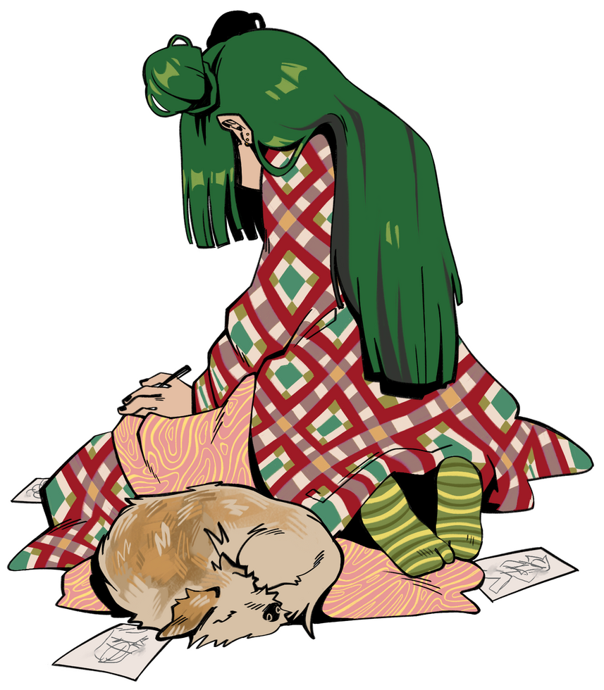Minted in Louisiana, 1996.I don’t have any specific focus in my work - I experiment with a lot of different media and topics. I’m mostly known for my bold linework and character design. Next, I would like to learn leatherworking and game making. I spend most of my time laying in the grass with my dogs.You can contact me alalampone@gmail.com